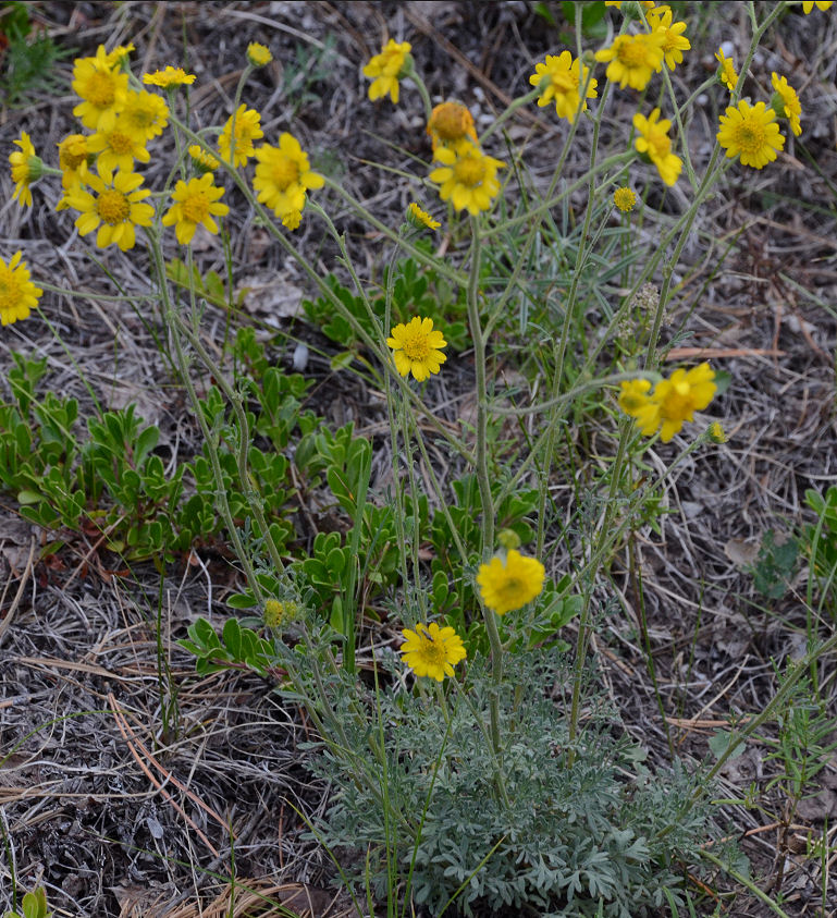 Amauriopsis dissecta is a North American species of flowering plants in the daisy family known by the common names yellow ragweed and ragleaf bahia. It is native to the western United States as far north as the Black Hills of South Dakota and Wyoming, as well as in northern Mexico (Baja California, Chihuahua, Coahuila, Sonora). Amauriopsis dissecta can be found in several habitat types, from dry mountain slopes to roadsides. This is an annual or biennial herb producing a spindly, branching, erect stem variable in height from 20 centimeters to well over one meter. The stems are reddish and generally glandular. The small leaves are mostly located toward the base of the stem and are finely divided into linear lobes. The spreading inflorescence produces several flower heads, each lined with hairy, glandular phyllaries. Each head has a fringe of rounded yellow ray florets about half a centimeter long and a center of yellow disc florets. The fruit is a dark-colored achene 3 or 4 millimeters long. If there is any pappus it is small and scale-like.