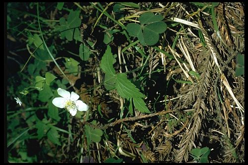 Anemone deltoidea is a species of flowering plant in the buttercup family known by the common names Columbian windflower and western white anemone. It is native to the forests of the west coast of the United States. This is a rhizomatous perennial herb growing between 10 and 30 centimeters tall. There is usually a single basal leaf which is divided into three large toothed leaflets, each up to 6 centimeters long. There may be more leaves along the mostly naked stem which are similar in appearance to the leaflets on the basal leaf. The flower cluster has three leaflike leafs and a single flower. The flower has no petals but five petal-like white sepals each one to two centimeters long. There are up to 120 whiskery stamens and many pistils. The fruit is a cluster of spherical achenes.