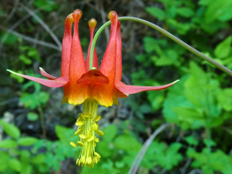 The Western Columbine is also known as the Red or Crimson Columbine because of its attractive red-and-yellow-colored flowers. The blooms are very appealing to hummingbirds. Mature seedheads provide food for finches and other bird species.