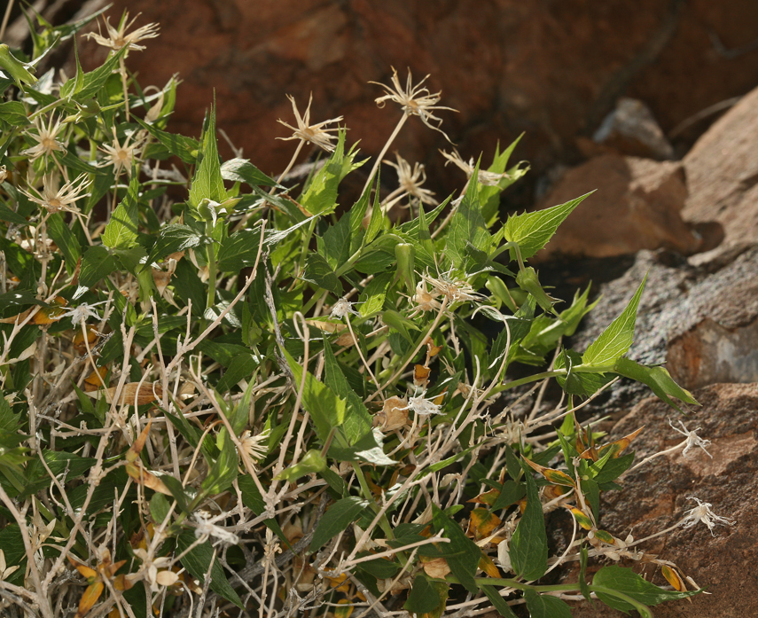 Brickellia atractyloides is a North American species of flowering plant in the daisy family known by the common name spearleaf brickellbush. It is native to the desert regions of the southwestern United States (Arizona, California, Nevada, Utah) and northwestern Mexico (Sonora, Baja California). Brickellia atractyloides is a shrub up to 50 cm (20 inches) tall. It produces many small flower heads with cream-colored or pale green disc florets but no ray florets.