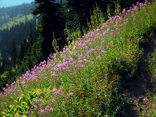 Fireweed (Chamerion angustifolium) is a native perennial herb in the Onagraceae (Evening Primrose) family that grows primarily in the Sierras and North Coast Ranges, with scattered locations elsewhere in the state. It is a pioneer species that is most often seen in burned forest areas. After fire or disturbance is can become the dominant species in an area. As trees and large shrubs return, Fireweed disappears. The attractive flowers have four magenta to pink petals, 2 to 3 cm in diameter, and have a resemblance to some Clarkia species. It is very hardy and it said to survive in areas of oil spill. It is not often seen in residential gardens but is useful in restoration projects or to rapidly fill in a large, bare area.