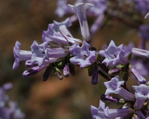 The plant’s long, narrow leaves, which can grow up to six inches, are coated in a sticky resin and often dusted with black fungi. The leaves emit a strong, bitter scent considered unpleasant by most and are generally avoided by animals. In late spring to summer, California yerba santa produces clusters of small, bell-shaped flowers that range from white to light purple, providing nectar for native pollinators.