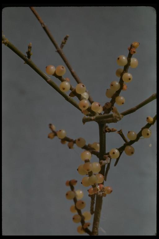 Phoradendron californicum, the desert mistletoe or mesquite mistletoe, is a hemiparasitic plant native to southern California, Nevada, Arizona, Sonora, Sinaloa and Baja California. It can be found in the Mojave and Sonoran Deserts at elevations of up to 1400 m (4600 feet). The mistletoe is a leafless plant that attaches to host plants, often leguminous woody desert trees such as Cercidium and Prosopis. Desert mistletoe takes water and minerals from its host plants but it does its own photosynthesis, making it a hemiparasite.